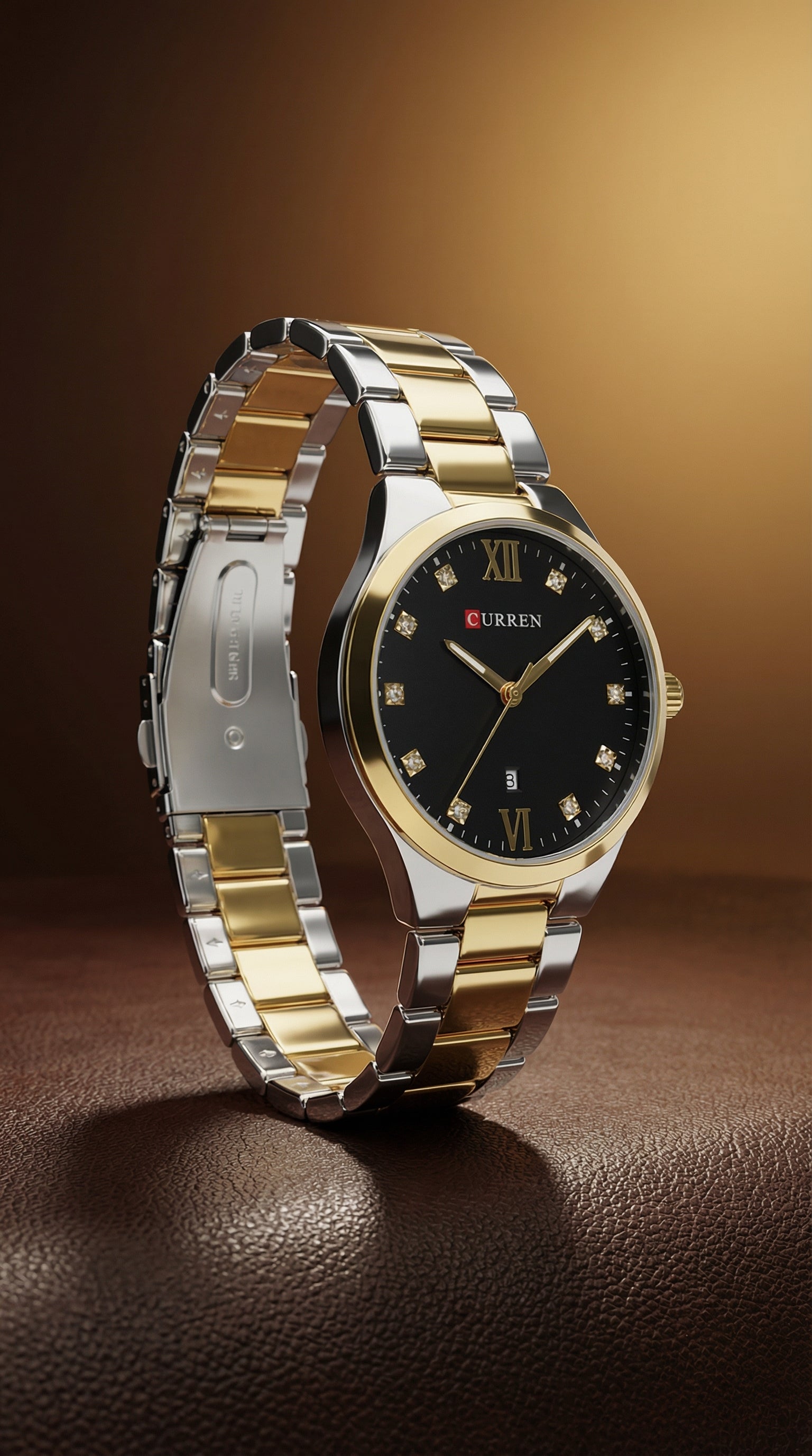 The CURREN Two-Tone Quartz Watch is a refined and stylish timepiece designed for both