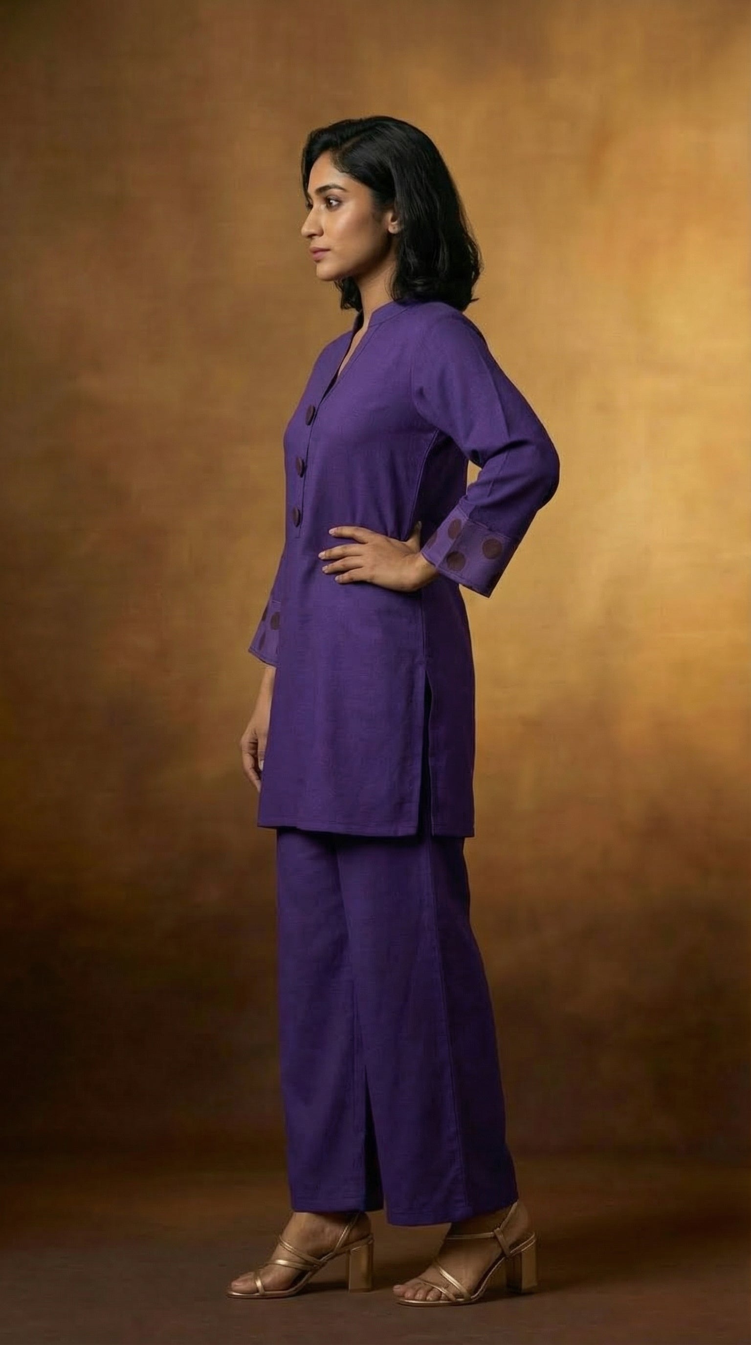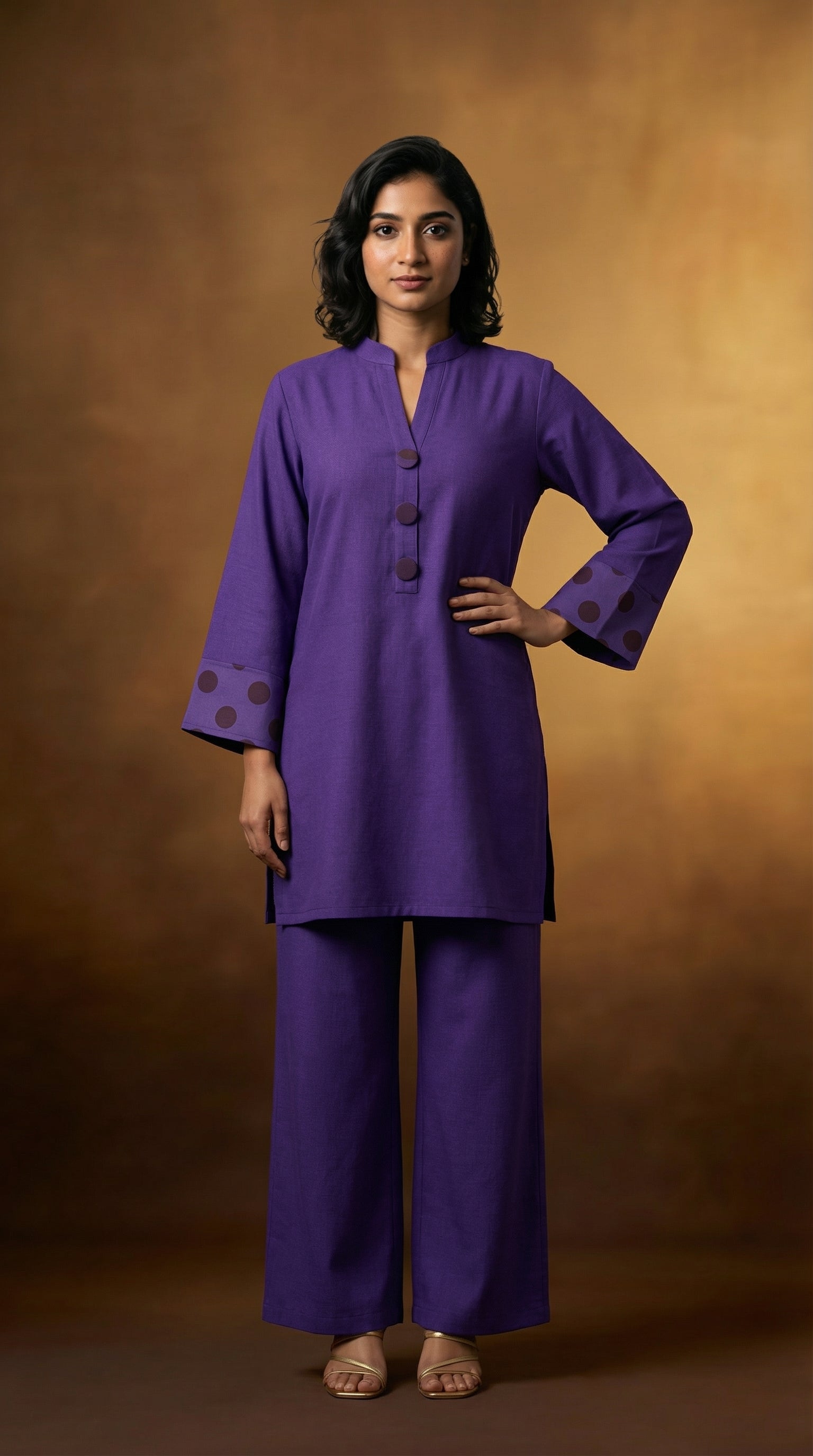 The Plum Luxe Ensemble showcases timeless elegance in a rich purple hue, crafted from premium cotton for superior comfort and durability. This expertly tailored piece combines the natural breathability of cotton with a sophisticated color palette that complements a wide range of skin tones. The luxurious drape and refined construction make it an essential addition to any wardrobe, suitable for both casual wear and more formal occasions. Ideal for those who appreciate quality fabrics and understated sophistication, this ensemble delivers versatile style with the comfort of natural fibers.